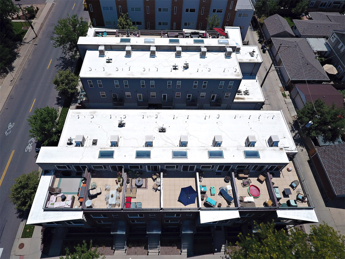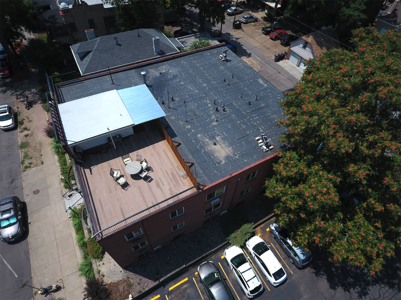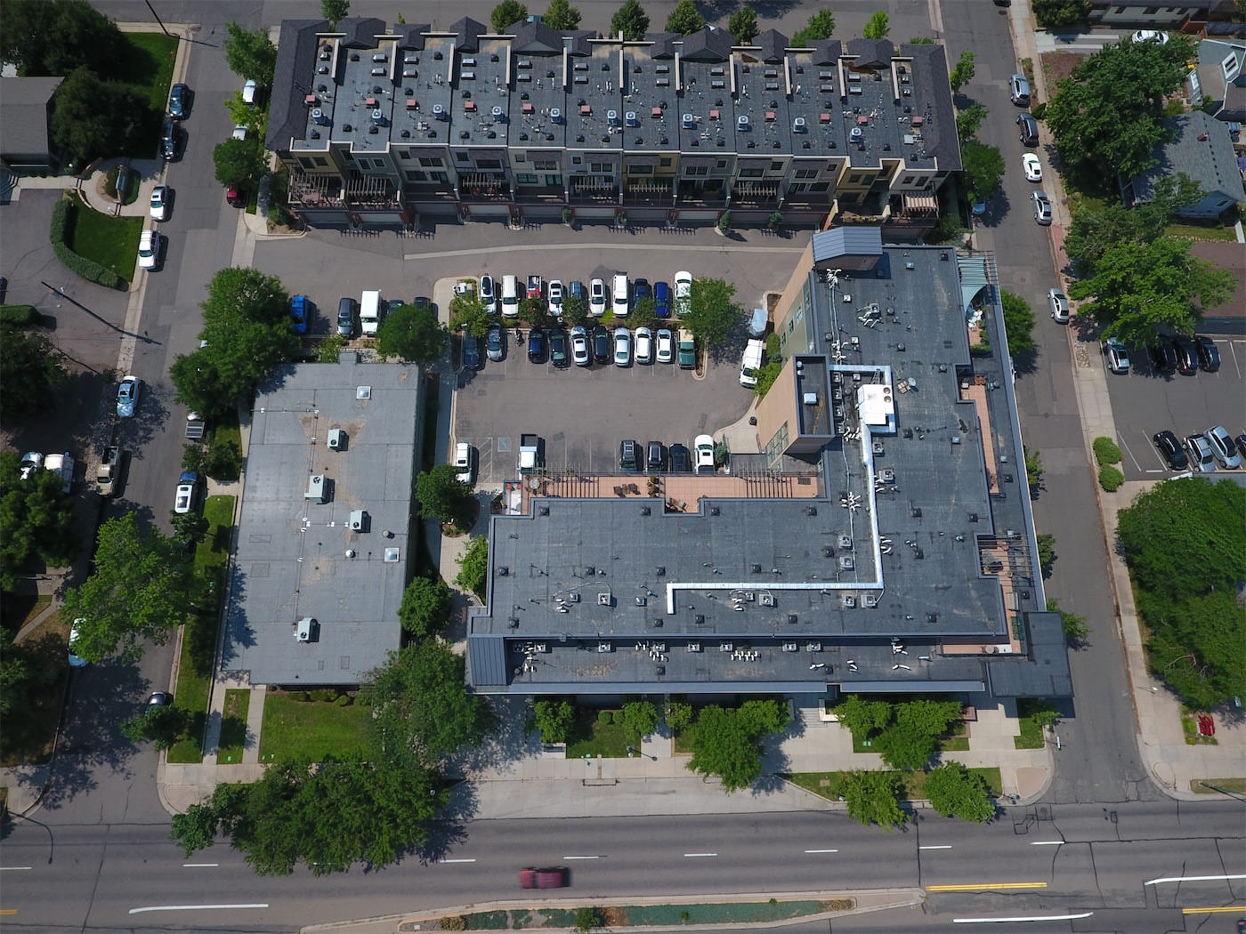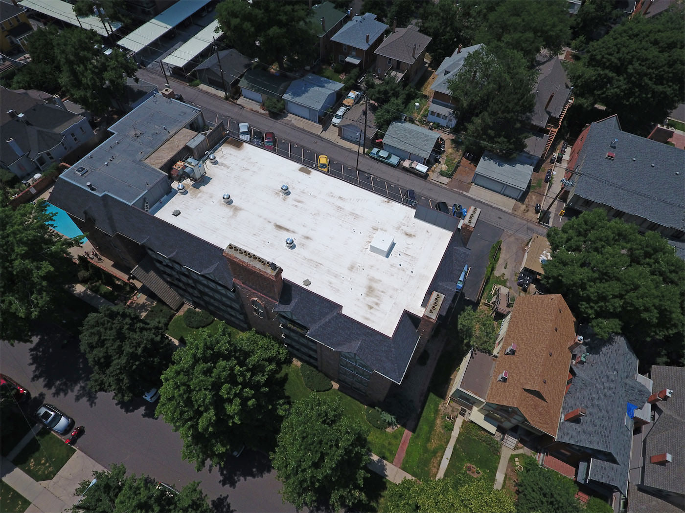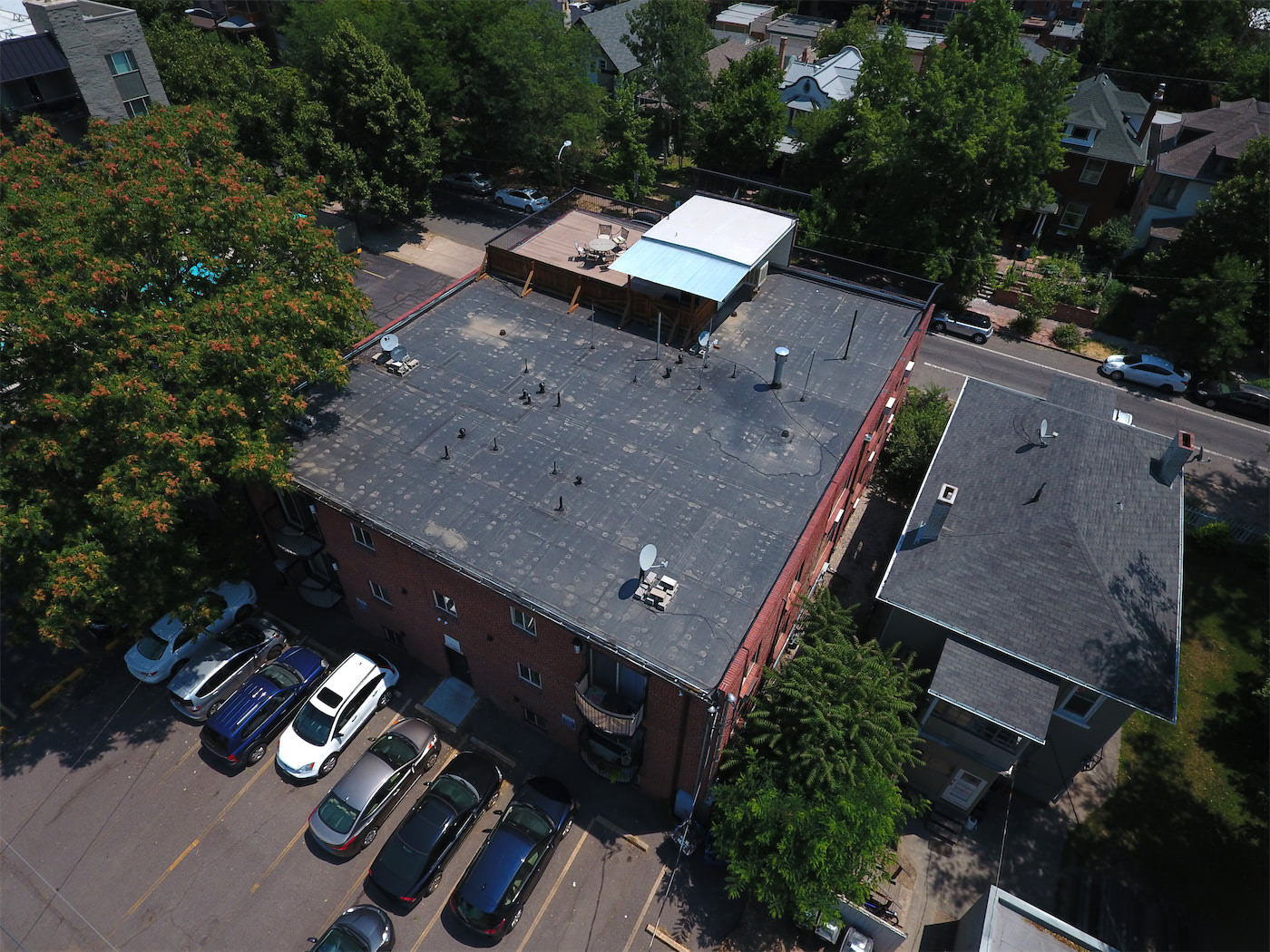 The Grant Park Association, having been referred to LR Contracting Inc. by another HOA, called and scheduled a complimentary 20--minute inspection. They knew there had been some HAIL, they did not know if they had suffered any real damage. Grant Park is a five-story, 56 unit, urban-green-condominium complex comprised of two buildings within enjoining courtyard and flat roof systems on the 4th and 5th floors. Grant Park is located on the edge of the Cherry Creek in Capitol Hill neighborhoods.