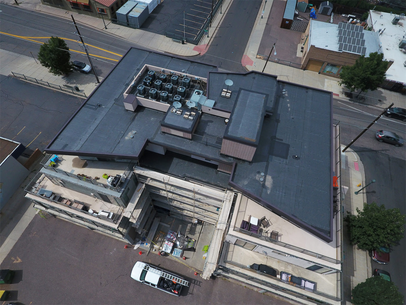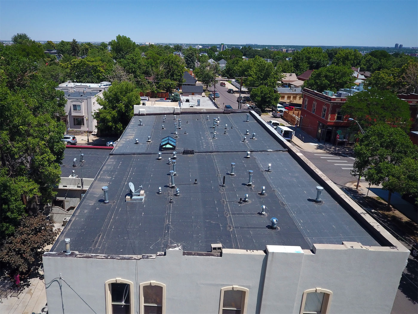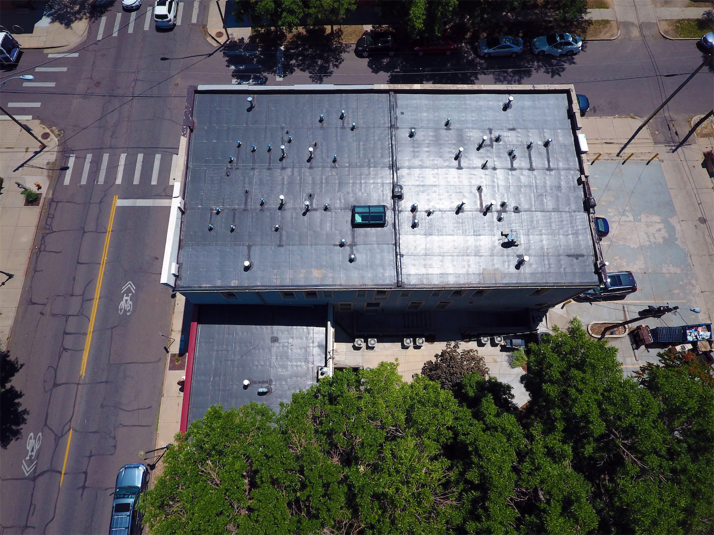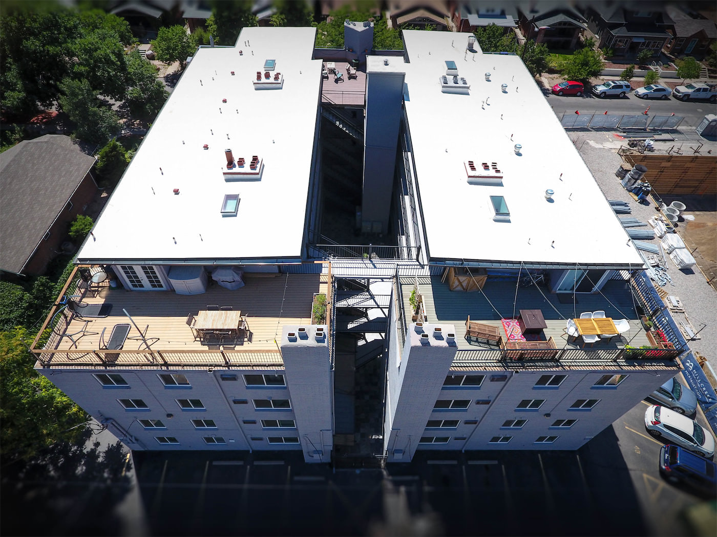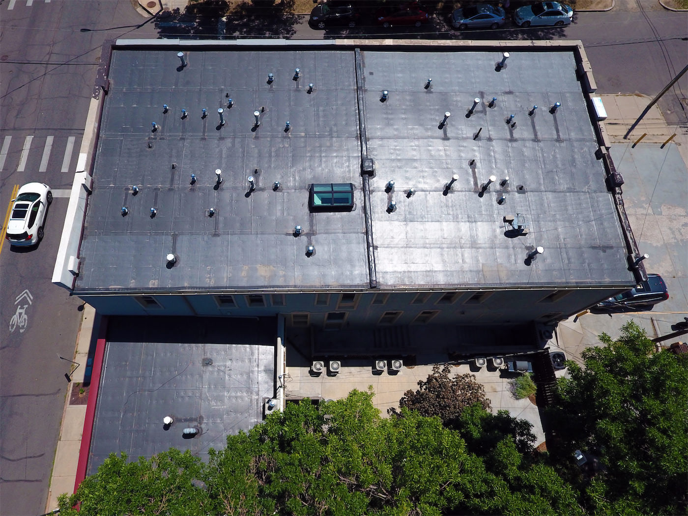 The Grant Park Association, having been referred to LR Contracting Inc. by another HOA, called and scheduled a complimentary 20--minute inspection. They knew there had been some HAIL, they did not know if they had suffered any real damage. Grant Park is a five-story, 56 unit, urban-green-condominium complex comprised of two buildings within enjoining courtyard and flat roof systems on the 4th and 5th floors. Grant Park is located on the edge of the Cherry Creek in Capitol Hill neighborhoods.