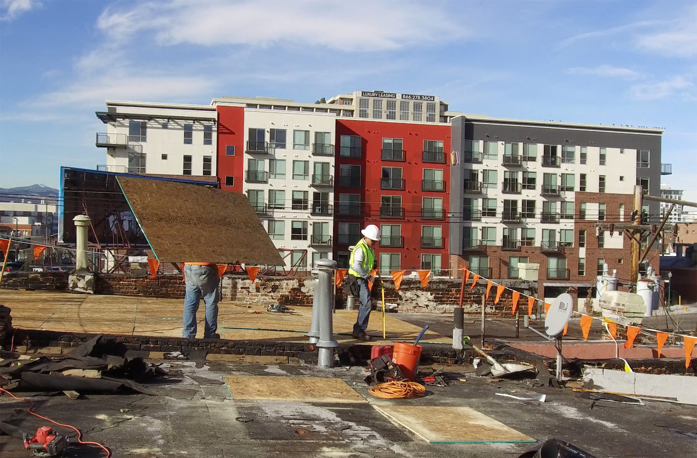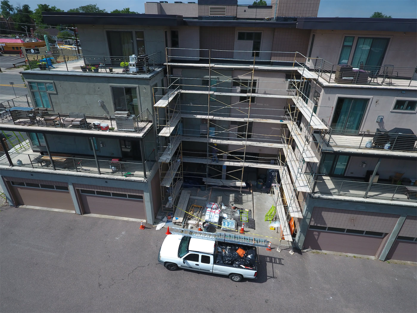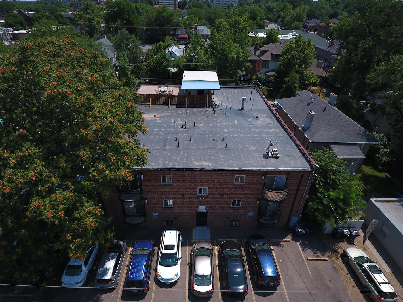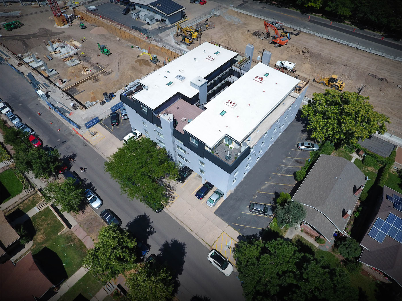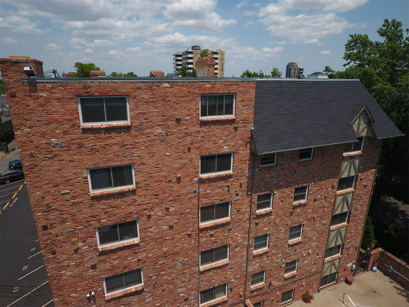 The Grant Park Association, having been referred to LR Contracting Inc. by another HOA, called and scheduled a complimentary 20--minute inspection. They knew there had been some HAIL, they did not know if they had suffered any real damage. Grant Park is a five-story, 56 unit, urban-green-condominium complex comprised of two buildings within enjoining courtyard and flat roof systems on the 4th and 5th floors. Grant Park is located on the edge of the Cherry Creek in Capitol Hill neighborhoods.